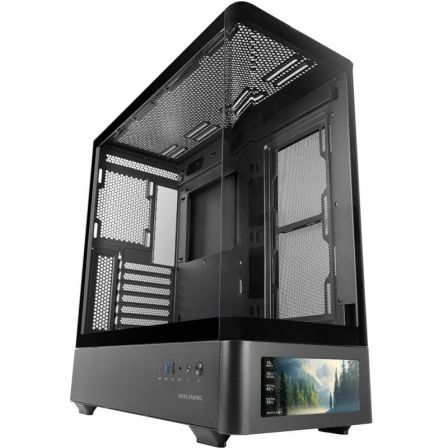 La MC‑LCDPRO es una caja gaming ATX creada para mostrar y controlar tu PC desde el propio chasis: pantalla IPS LCD integrada de 7,2”, cristal templado curvado sin marco y USB‑C de última generación. Su interior de doble cámara maximiza el orden y el flujo de aire, con un diseño panorámico que convierte tu setup en un escaparate técnico y estético a partes iguales.