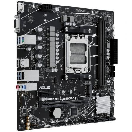 Placa base AMD A620 micro-ATX, DDR5, tarjeta gráfica PCIe 4.0 y compatibilidad con PCIe 4.0 M.2, HDMI™, VGA, USB 3.2 Gen 1 tipo A, SATA 6 Gbps, cancelación de ruido AI bidireccional, Aura Sync