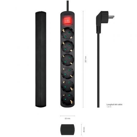 Regleta con Interruptor Aisens A154-0536/ 6 Tomas de Corriente/ Cable 1.4m/ NegroRegleta con Interruptor Aisens A154-0536/ 6 Tomas de Corriente/ Cable 1.4m/ Negro