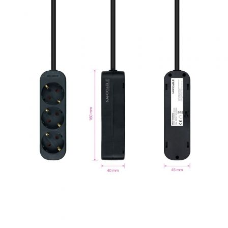 Regleta Nanocable 10.38.0003-NS-BK/ 3 Tomas de Corriente/ Cable 1.4m/ NegraRegleta Nanocable 10.38.0003-NS-BK/ 3 Tomas de Corriente/ Cable 1.4m/ Negra